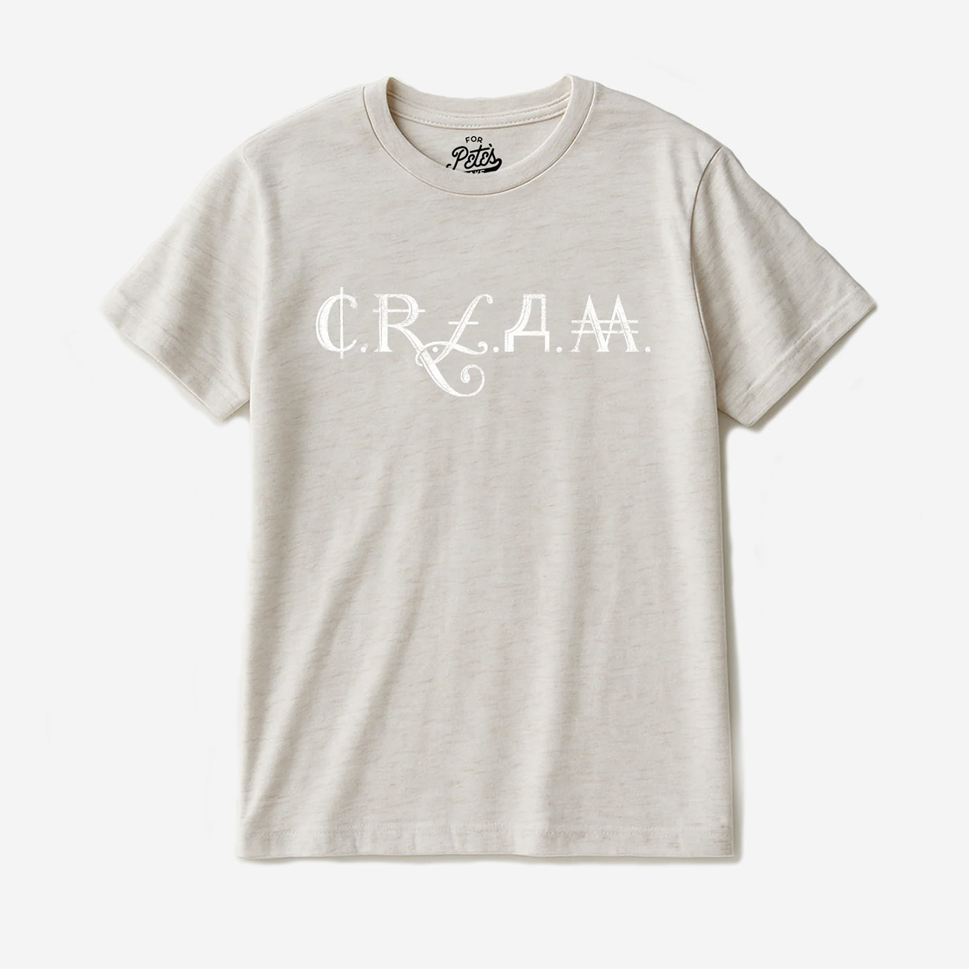 Our premium C.R.E.A.M. tee gives delivers the best of both worlds- supreme comfort and fashion forward logo. This tee is made in the USA using 100% combed and ring-spun cotton. Its ultra-comfortable, soft, and lightweight fabric will let you conquer traveling, shopping, and everything in between. The tee offers excellent flexibility, dynamic comfort, and a perfect fit all day long. So step into the crowd with confidence, style, and comfort by wearing our versatile C.R.E.A.M. tee!